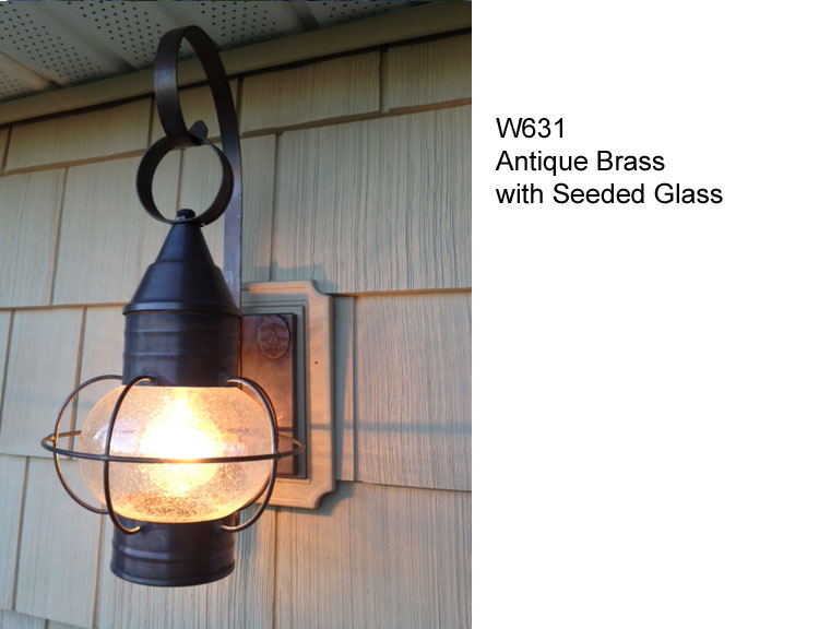 | “I received my lights yesterday. They were packed well and I was so glad they arrived in one piece. And, they are even more beautiful than I imagined. The patina is beautiful! The seeded glass is beautiful and worth the extra money. I love everything about them and can’t wait to hang them up. Thank you for the fast shipment. I would refer Sandwich Lantern to anyone.” – Beverly T., Massachusetts |